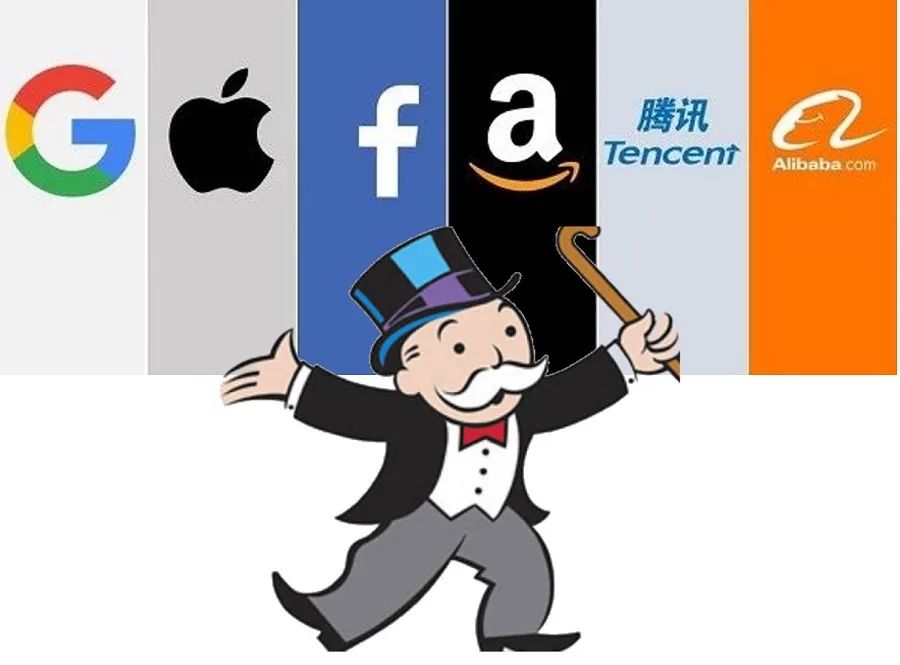GAFATA(谷歌、苹果、Facebook、亚马逊、腾讯、阿里巴巴)都是垄断巨头。