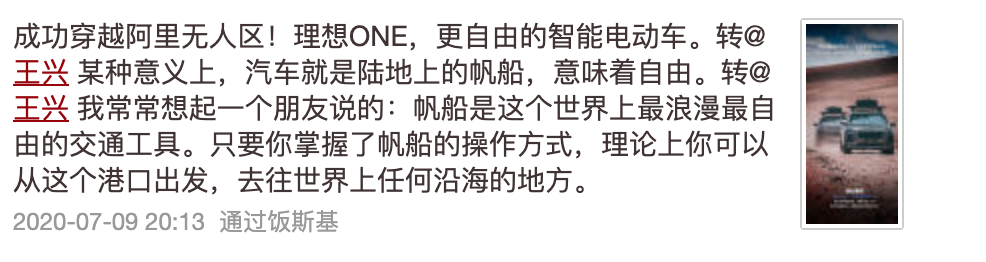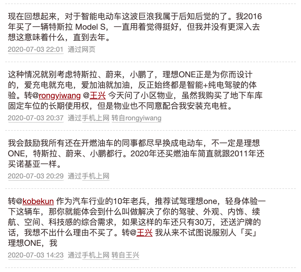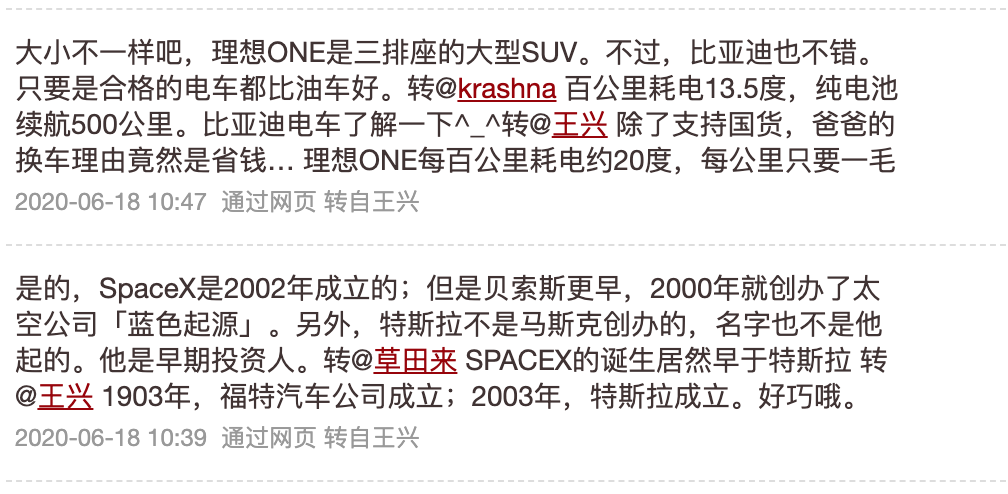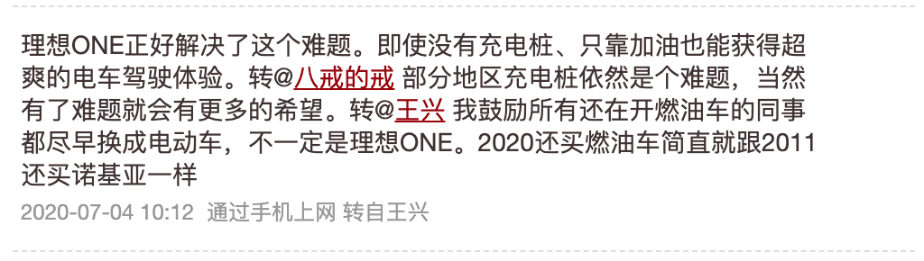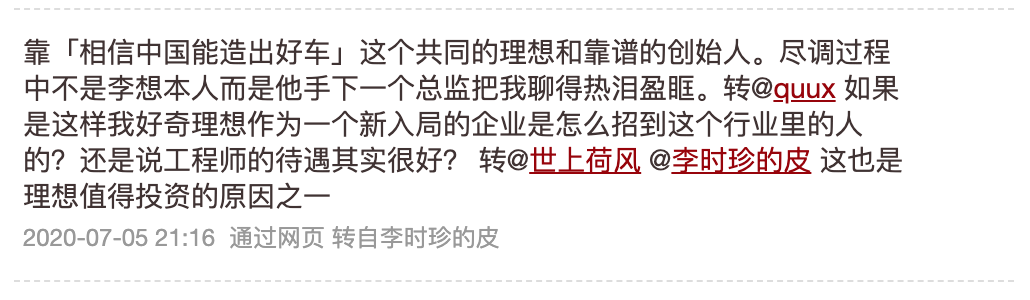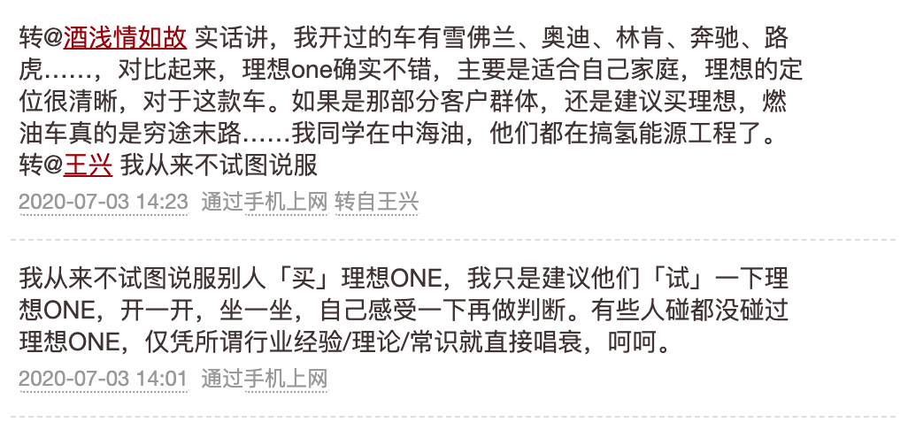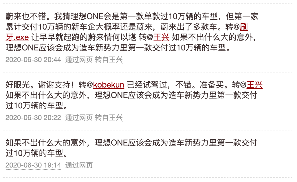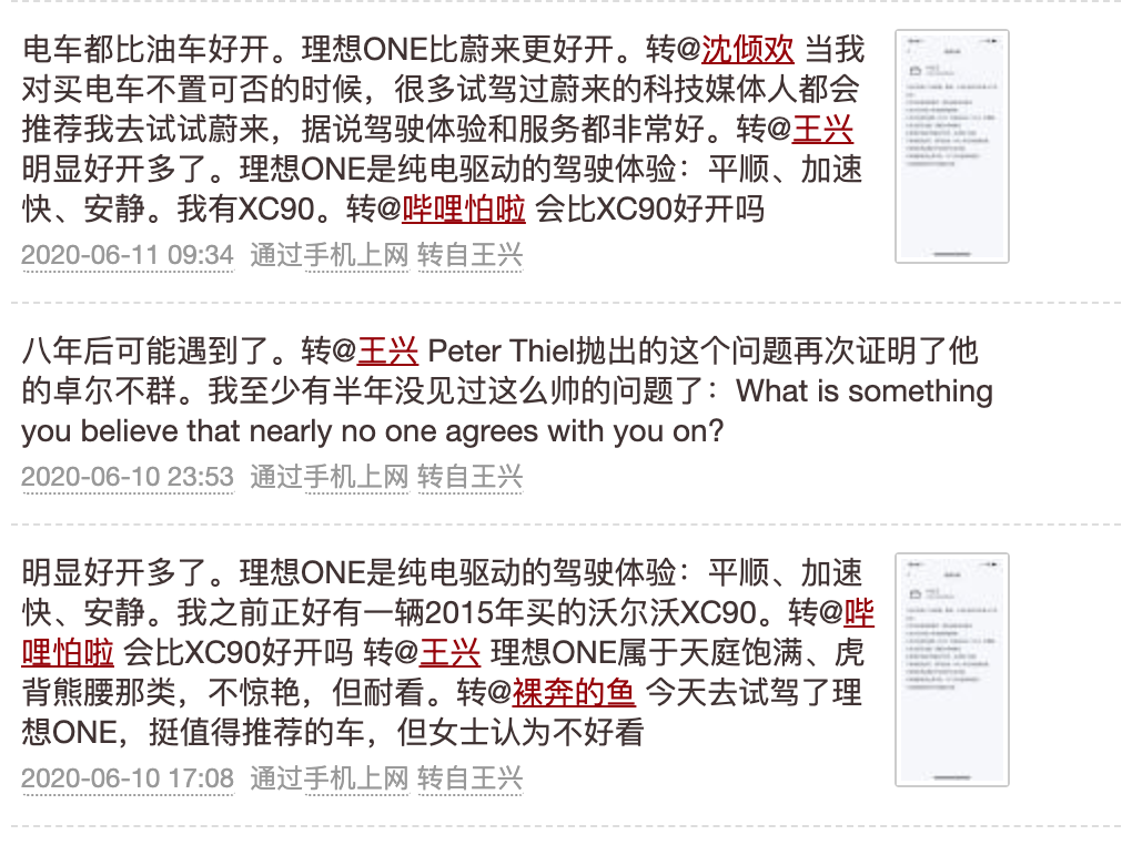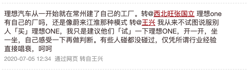 这三条推是连在一起的,王兴认为李想是乔布斯式的创业者