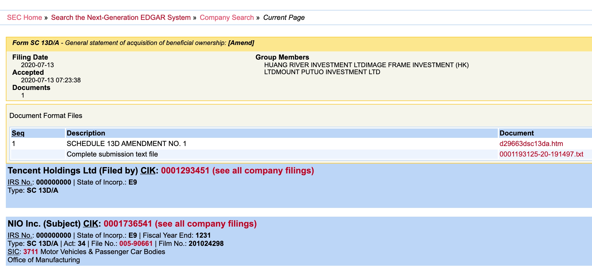 腾讯新的 13D 修正显示持有蔚来股份比例从 15.1% 提升至 16.3%。
