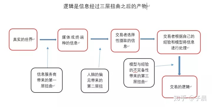 逻辑常常经不起推敲,风控才是核心。人们经常过多的关注于逻辑本身的对错,不管是基本面上的逻辑还是技术面上的逻辑,因为人们总是在寻求一个理由去为自己的行为提供正当性,这是人类的天性,过分纠结于逻辑的对错只会让交易者离盈利越来越远,交易者真正应该关心的问题是逻辑的产生过程和与此匹配的风控系统的建设。下图表示的是我眼中的逻辑的产生过程