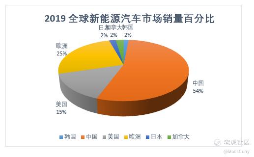 其中,中国2019年新能源汽车销量为120万台,占全球销量的54%,是名副其实的新能源汽车大国,远超欧美。