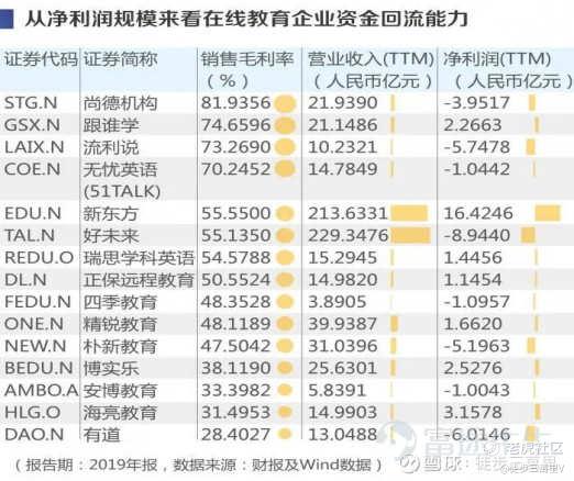 根据已披露的2019年财报数据,15家在线教育公司中 $尚德机构(STG)$跟谁学流利说51TALK 4家公司毛利率都能维持在50%~80%之间尚德机构以81.9%的毛利率独占鳌头毛利率最低的是有道仅为28.40%相差近50%。