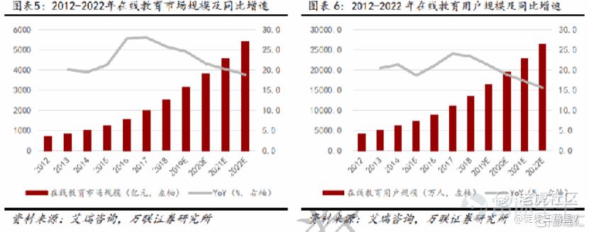疫情期间,在线教育再次受到了空前关注,行业渗透率进一步快速提升,年复合增长率超过20%,远高于GDP同期增速,用户人数也急剧上升。