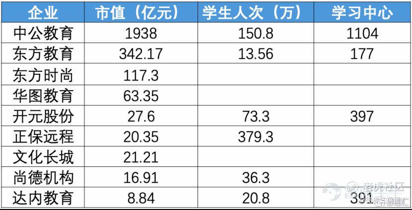 相比之下,在线职业教育的市场则长期处于低估值寡头竞争的状态。