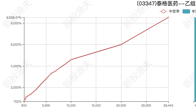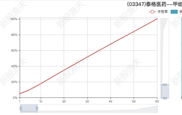 上图是泰格的甲组中签率曲线,甲组几乎是一条斜着向上的直线,说明随着申购手数的增大,中签率很线性的增长的,融的多,拿得多,一手几乎没什么大优势。