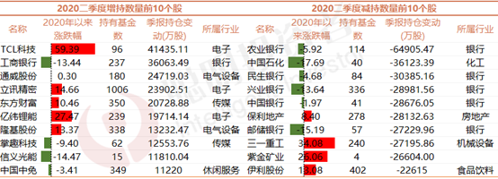 2、二季度依旧延续科技股行情,二季度增持幅度前十的股票中,主要还是TCL、立讯精密、亿纬锂能这样的电子股。