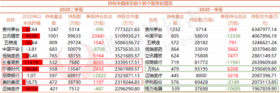而地产股万科、伊利股份和格力电器均退出了前十大。