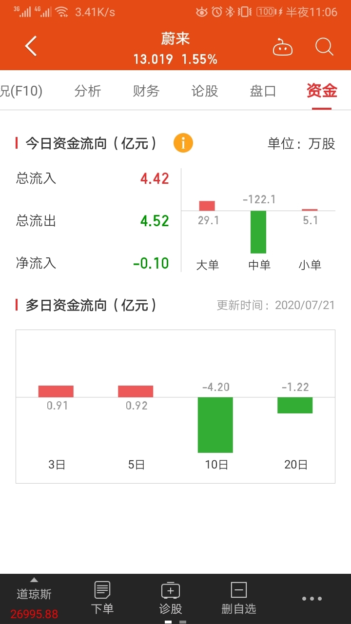 老虎和同花顺,显示的资金流向不一样