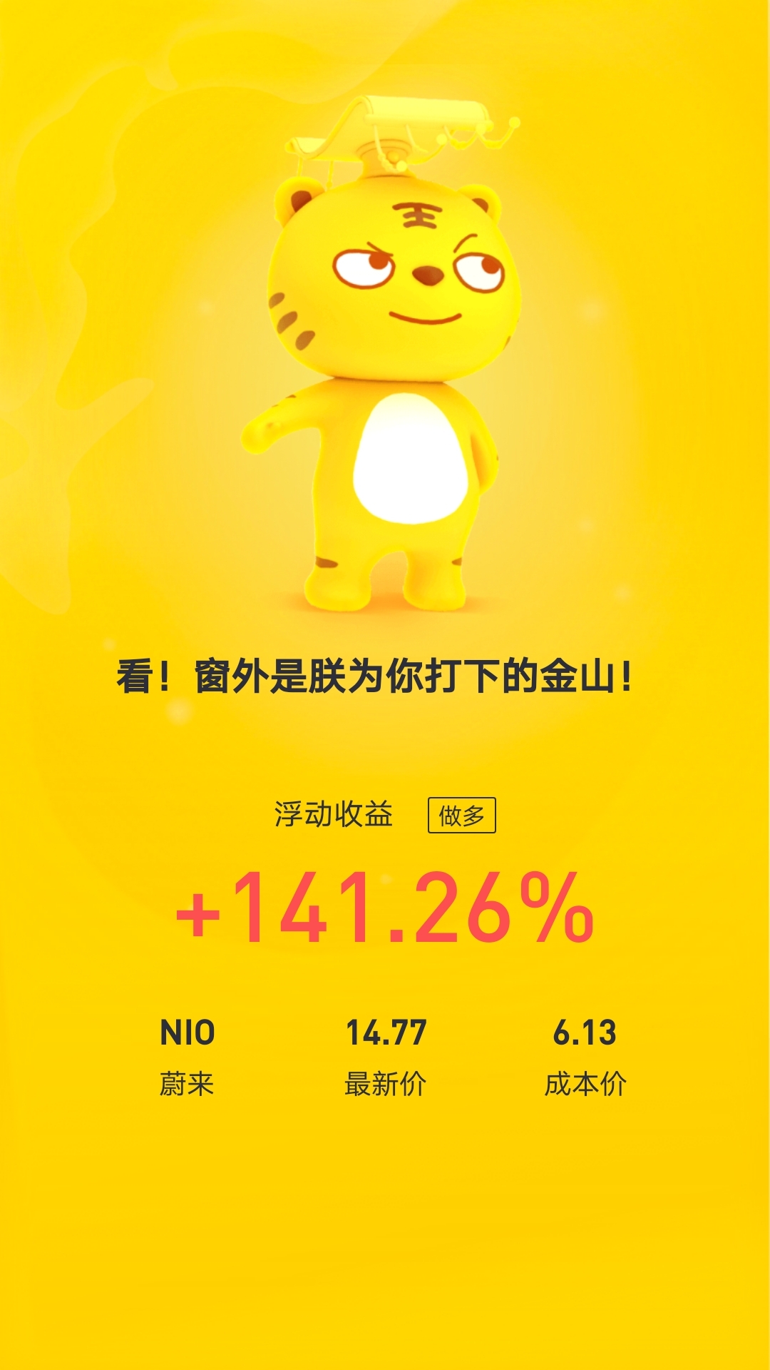 从去年开始持有,投蔚来就是投未来,跌到一块钱的时候也从未动摇过,涨到15也没想过下车,三年后再看能不能买房