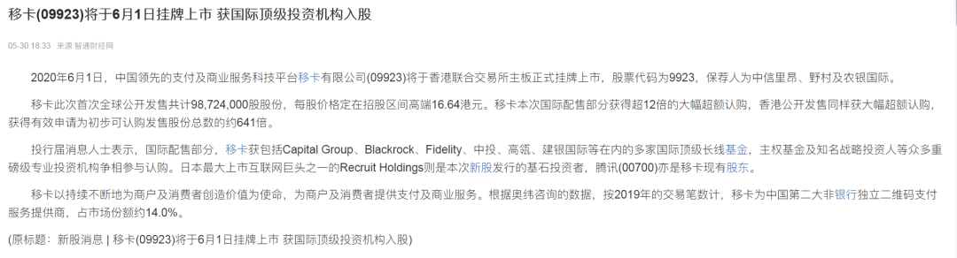 在网易即将招股前夕,关于移卡的市场消息是否是稳定军心的套路?
