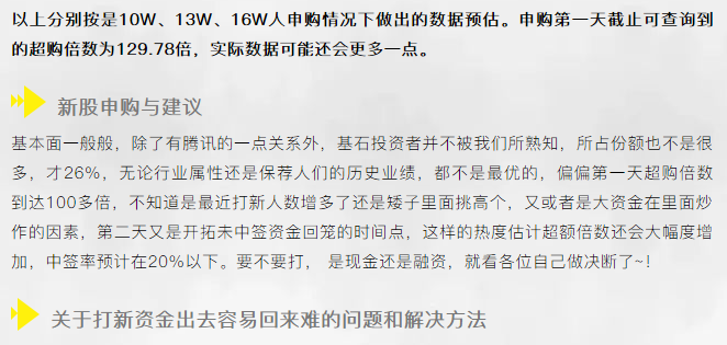 超额倍数多,说明认购的人数/资金量多,对于基本面并不是有多好的新股来说,16万多人的申购也直接的反映了今年参与港股打新的人数在大幅度增加并且盲目的跟风认购。 市场在变化,高超额倍数已经不在适用于新股申购判断的唯二数值。目前港股打新的变化和打新可转债一样,去年中签很容易,今年参与的人多了,十打九不中。港股打新现在随便什么新股,只要不是很垃圾的,中签率很低且存在破发风险。