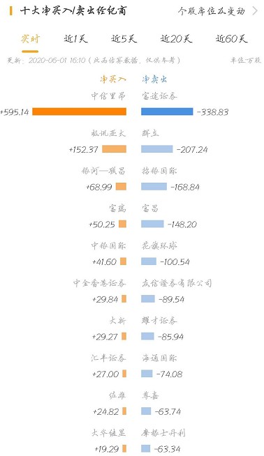 十大净买入/卖出经纪商,这个图是实时,会看很重要,可以看出稳价人/保荐人是否在护盘,我们可以看到中信里昂一直在买入,最终排名第一,护盘很有力。