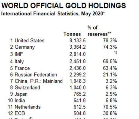如果按照世界各国持有黄金的量来排序,截止5月24日,550吨黄金比欧洲央行持有的504.8吨还要多。