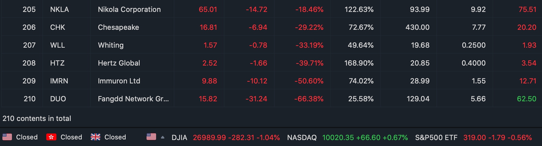 $Nikola Corporation(NKLA)$$Chesapeake(CHK)$$Whiting(WLL)$$Hertz Global(HTZ)$$Immuron Ltd(IMRN)$$Fangdd Network Group(DUO)$ 五大妖股 你割了几只?