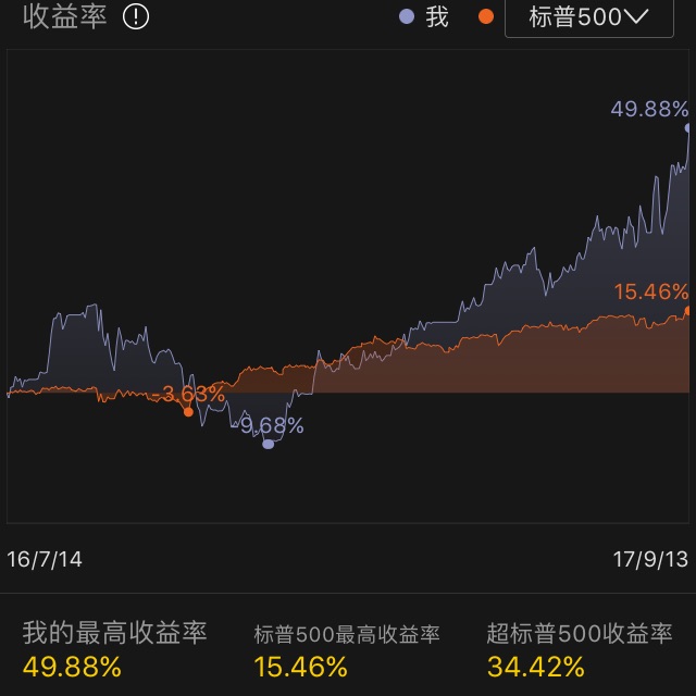 今年3月来的,陆续入了5万刀,目前320%