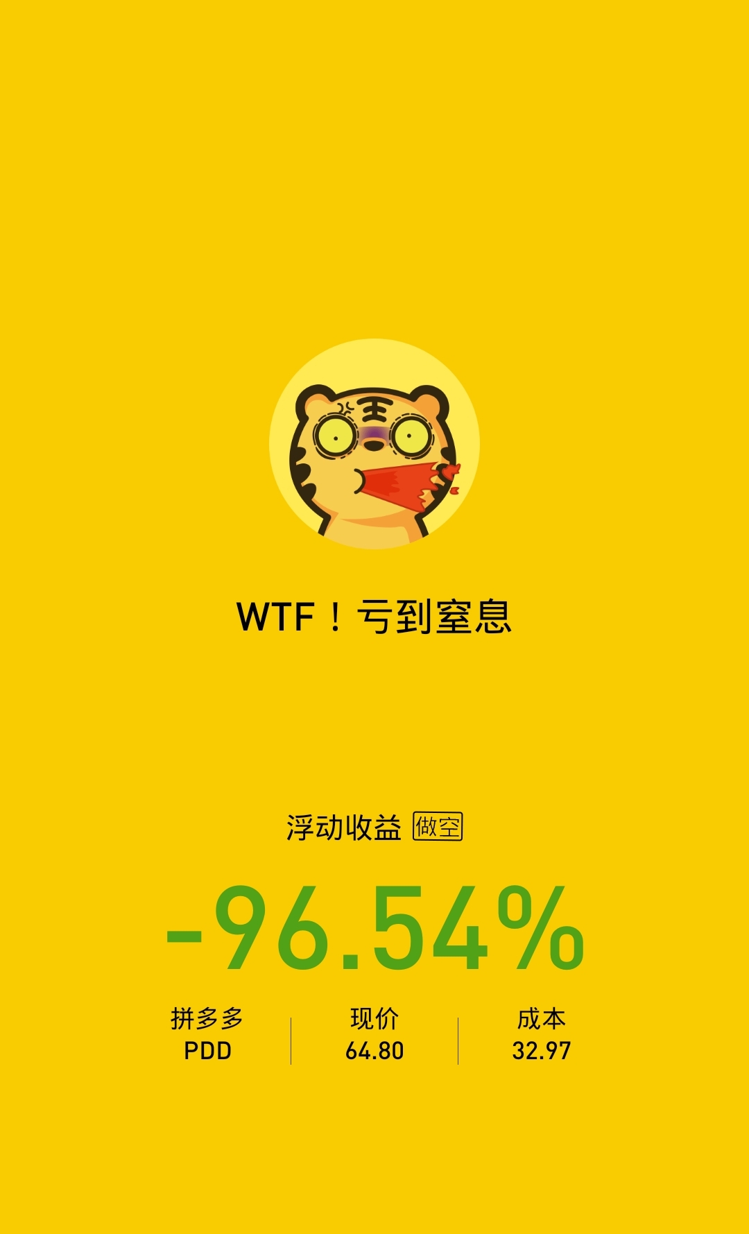 亲,做空不是你这样的 [笑哭],像拼多多,不能一次太多了。忍不住想空时,可以先做空几十股,涨了再加点。。。。。不能一下做空多了,庄家继续拉升,只能看着。。。。