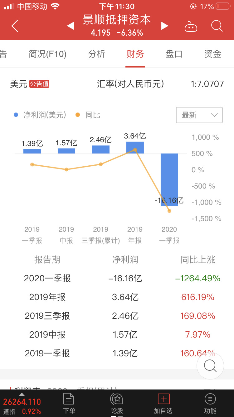 一季度就这样,二季度没法看了。其他抵押一季度是盈利的。