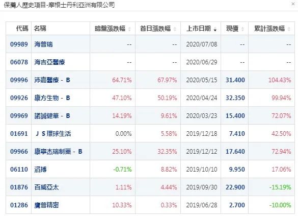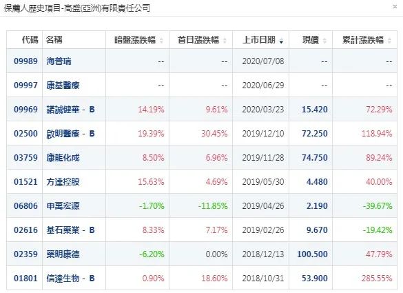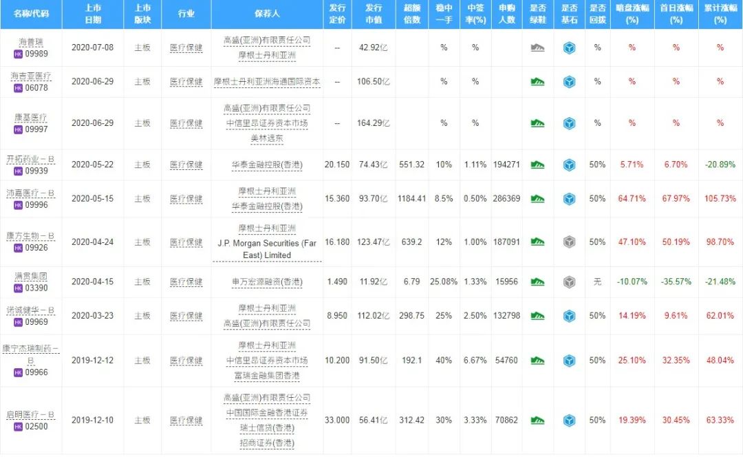 同行业上市新股情况