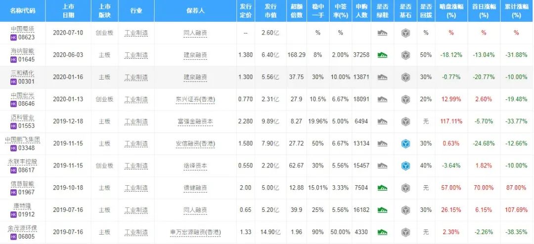 同行业新股上市情况