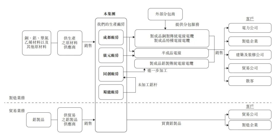 销售的产品可大致分为四个类别:(i)製成品电线电缆;(ii)半成品电线;(iii)铝製 品;及(iv)其他(包括电缆配套设备)。