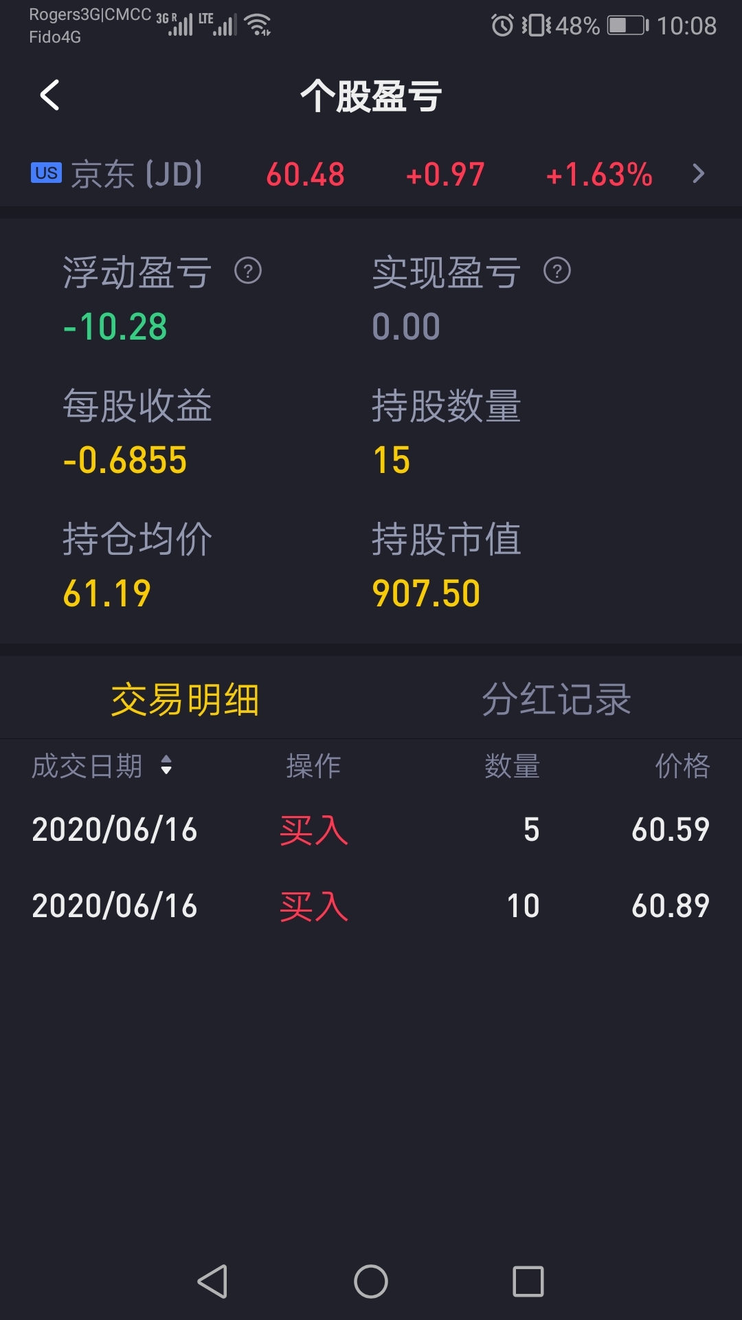 请教群里大佬,我买入价格那里最高是60.89,为什么持仓均价显示61.19呢?谢谢