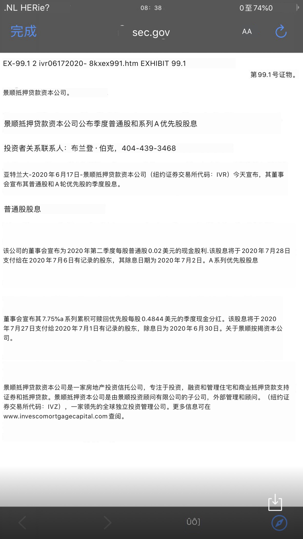 普通股派0.02,可赎回优先股派0.4844,不一码事
