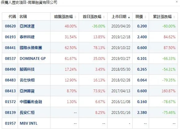 保荐人南华金融集团每年保荐的数量都是不多的,但是五年中的成绩非常优秀!虽说亚洲速运首日收盘是破发的,但是期间还有+40%的涨幅的,卖得好的才是师傅。