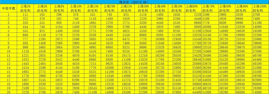 除了现金一手打新,多户融资请参考个人账户资金做足打新准备,附上涨幅毛利数值参考。