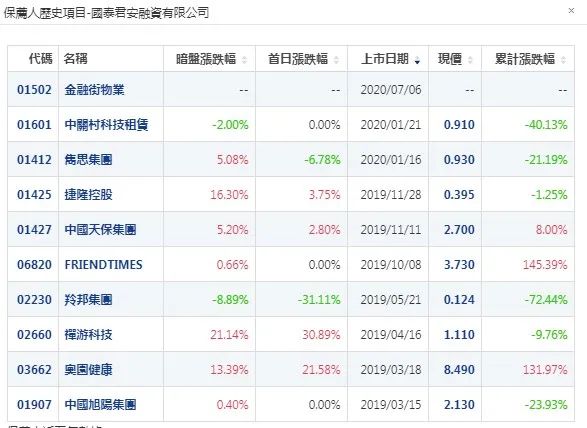 保荐人历史战绩