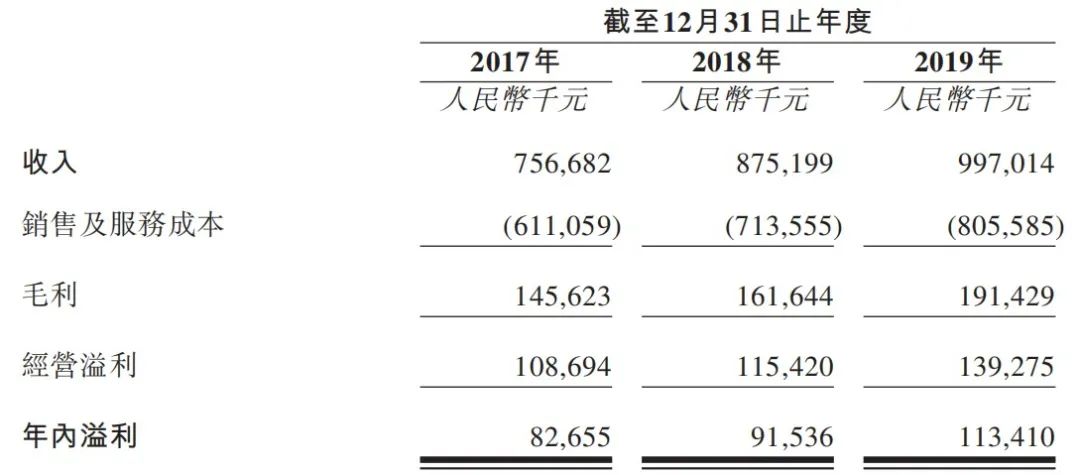 收入由截至2017年12月31日止年度的人民币756.7百万元增长15.7%至截至2018年12月31日止年度的人民币875.2百万元,并进一步增长13.9%至截至2019年12月31日止年度的人民币997.0百万元。