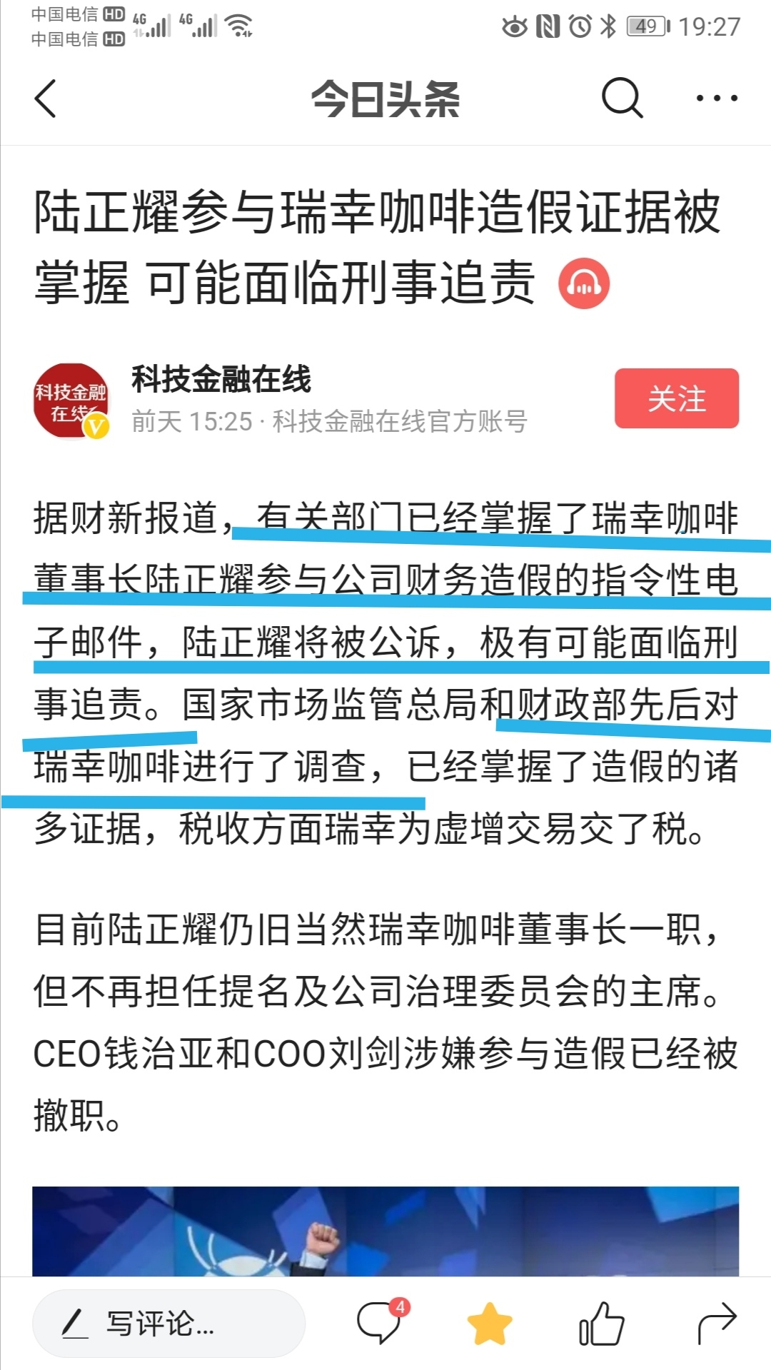 $瑞幸咖啡(LK)$$瑞幸咖啡(LK.US)$ 财政部都出马了,被实锤后的陆老板该何去何从?财新报道的这篇内容里有个关键点。是国内已经掌握了陆老板下发指令的证据,纵观整个大a里,只要财政部出马调查,基本都是实锤。陆老板卖车是不是为了充值律师费了?这真是一奇观,假设陆老板在美被定罪,判坐监。加拿大和美国有引渡协议,逃不了。要是国内被定罪坐监,他在美国坐完后回国会不会又坐一次了?(超期待6月中旬的听证会。)/擦汗