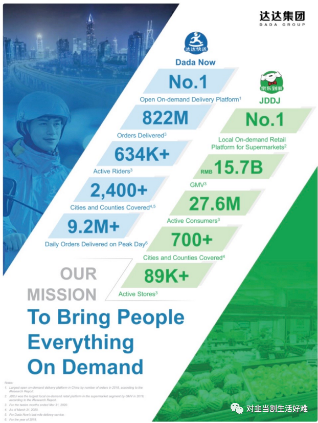 To Bring People Everything On Demand,我觉得37亿的达达还是有持有的价值的,至少我是衷心看好即时城市配送作为城市消费新基建的潜力,而且达达的各项指标的确也在向好(毛利刚为正也是正常的,这行业就这样)