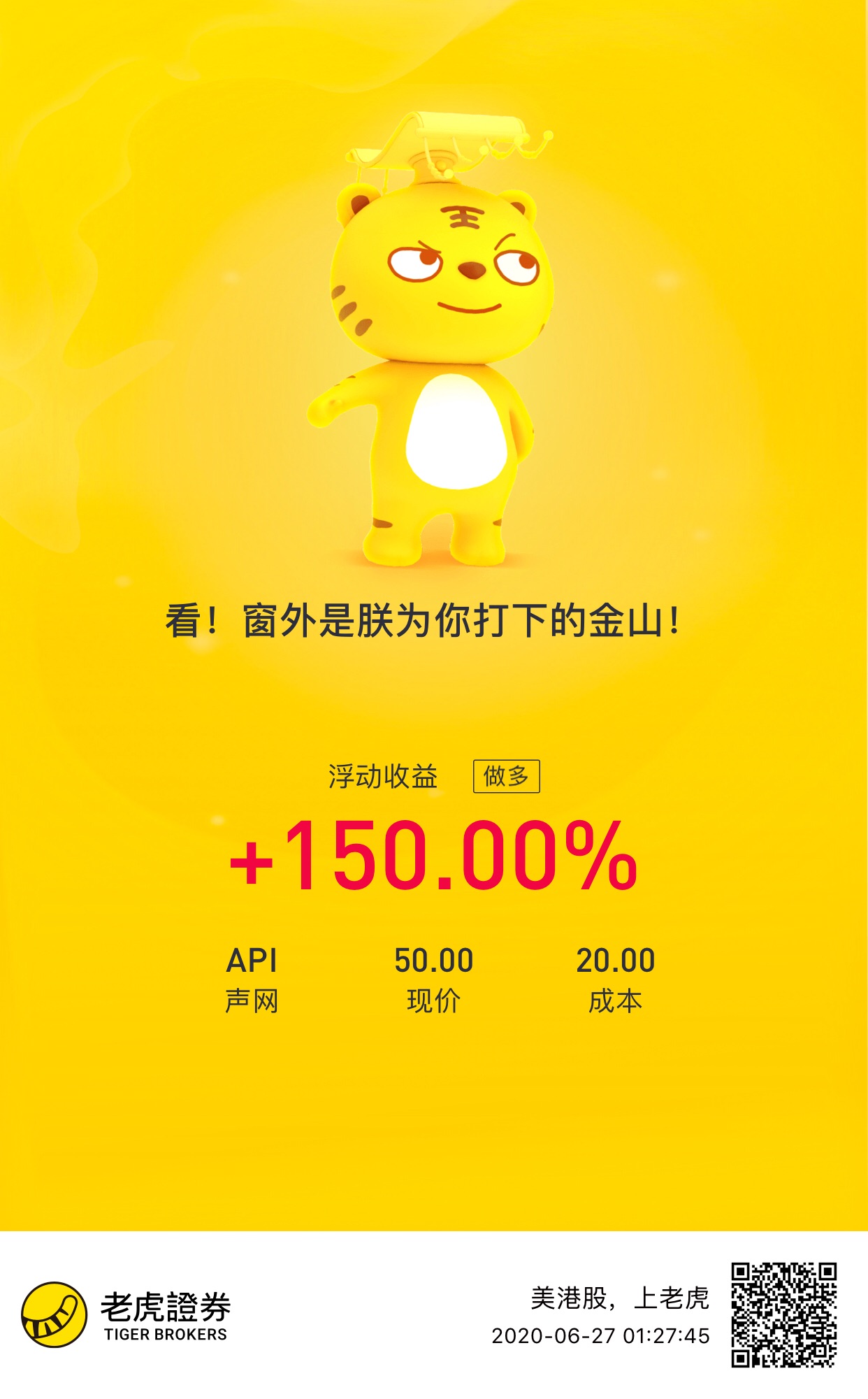 感谢老虎,第二次打新,连着中,100中5,太感谢了!新股也很给力,当日150%