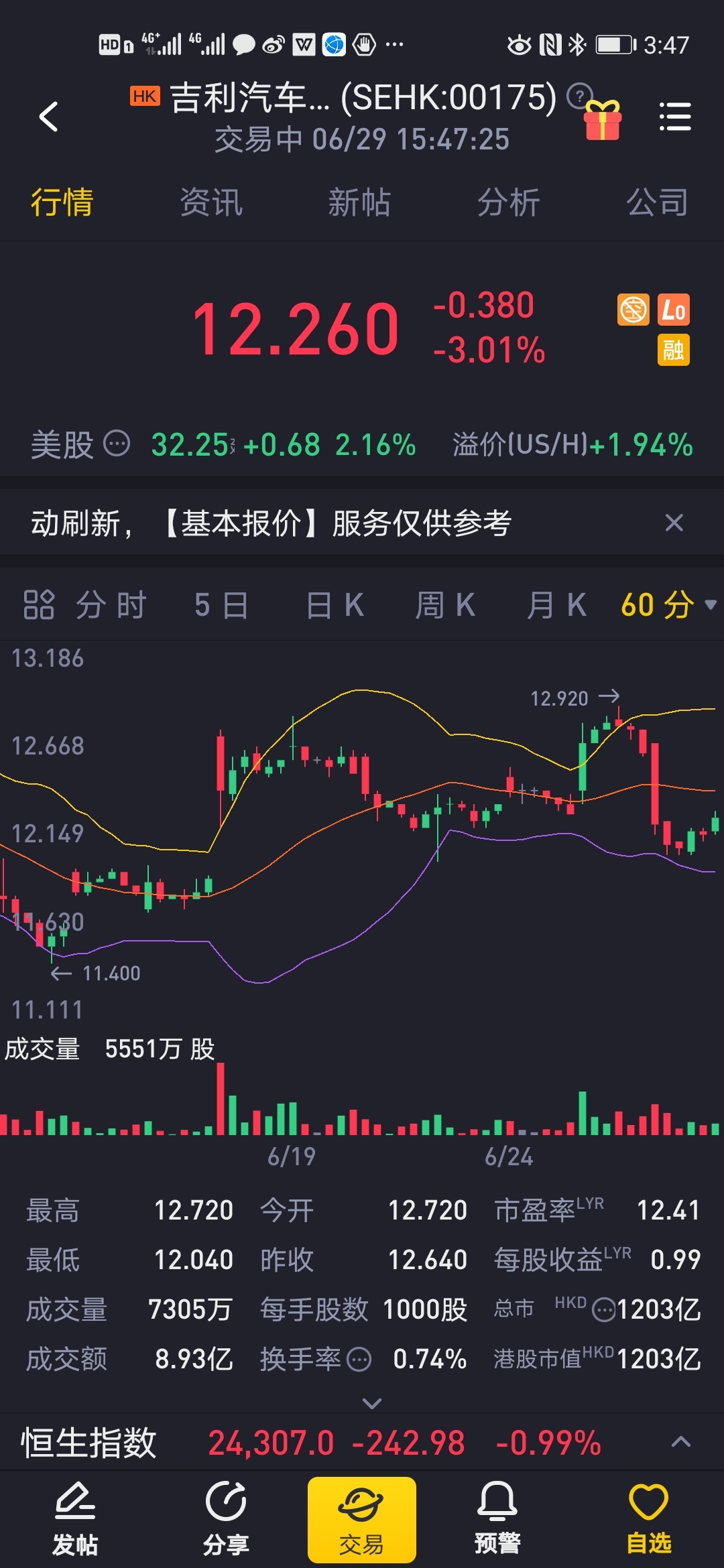 虽然是日线高点,但也可少量试试短线,因为吉利整体价位太低了