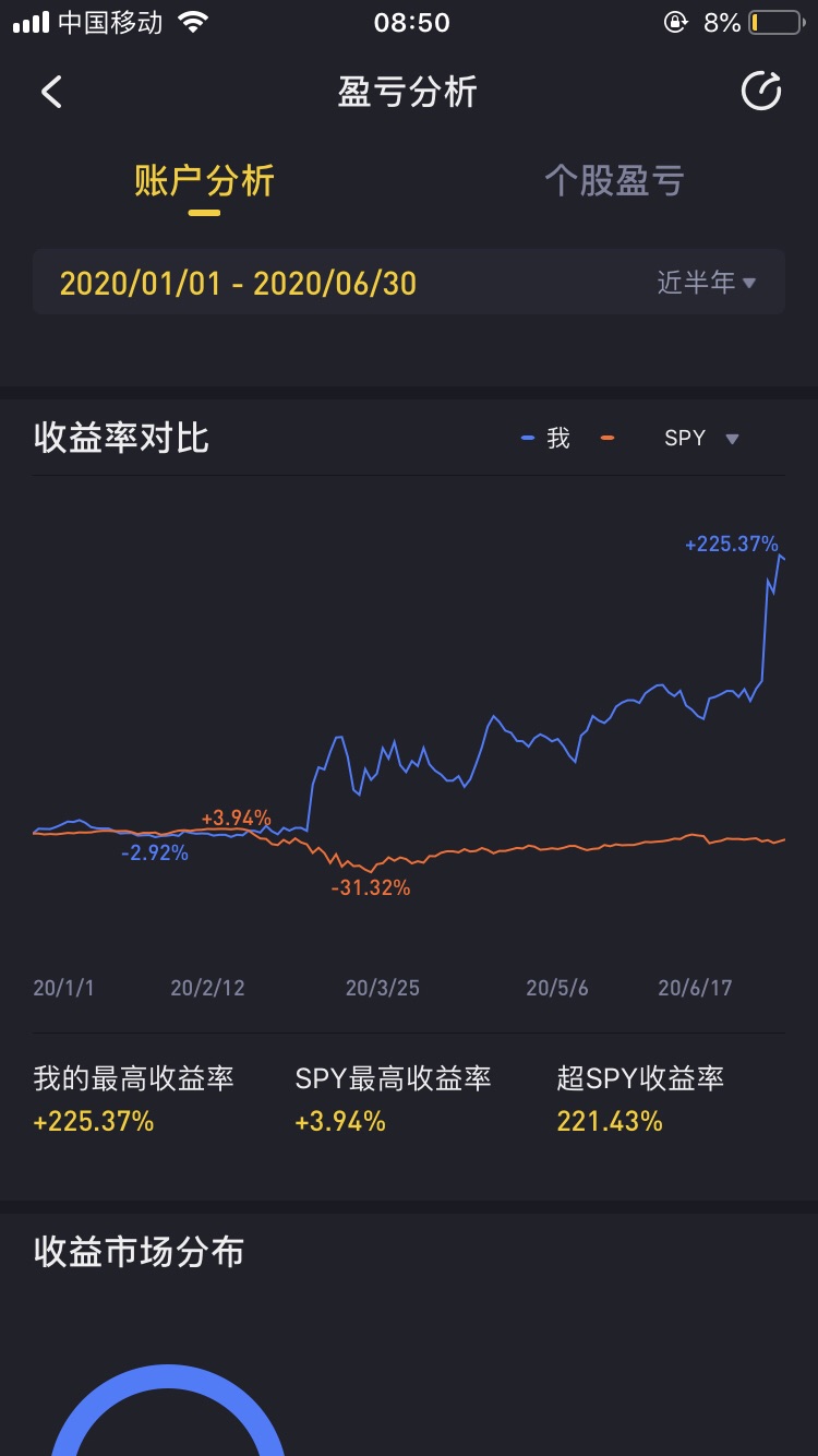 所以我持股范围圈最近半年主要以生物医药,互联网电商为主。回顾一下,错失了一些机会,比如180入的tvix,反反复复的买入卖出,最后在700的位置做空,导致利润大减,这是我最遗憾的一支,本来可以3倍收益稳稳的,结果被我做成了50%[捂脸]