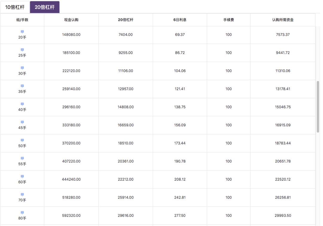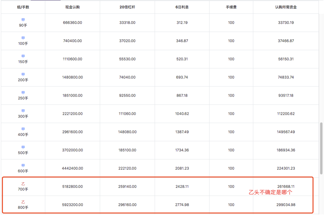 最后附上如果按7404的入场费计算,欧康的各手数需要的本金,提前准备钱吧。