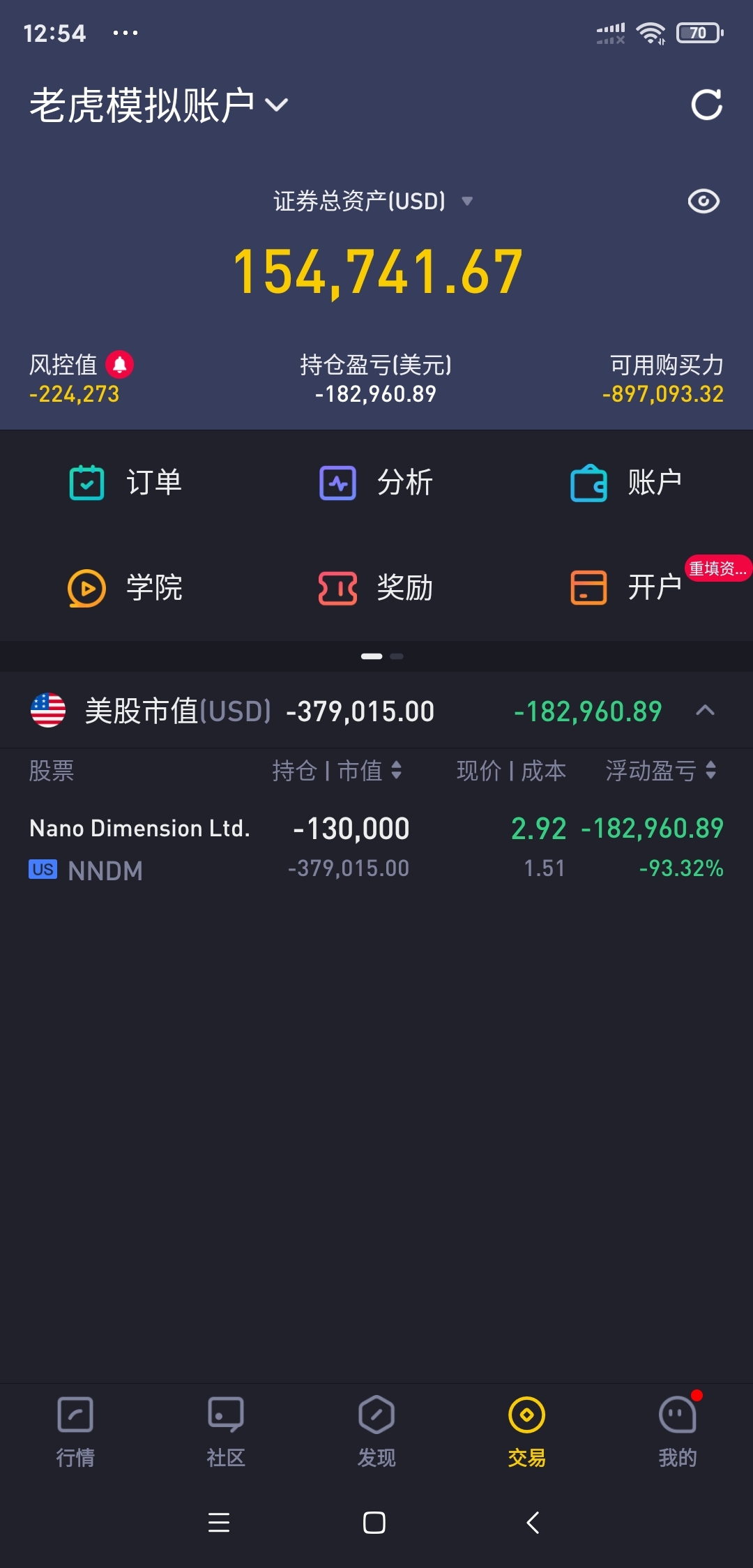 模拟盘瞬间清空利润。真是