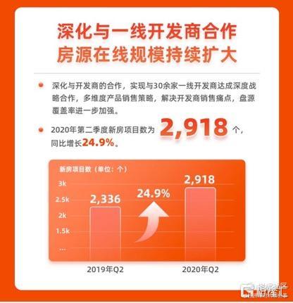 近年来,房多多持续深化与开发商的合作,为平台上的经纪人提供房源资源。目前,已与全国30余家一线开发商达成战略合作,提供多维度的营销解决方案,盘源覆盖率持续提升。最新财报数据显示,2020年第二季度,房多多平台上线的新房项目数为2,918个,同比增长24.9%。在获取新房项目方面,房多多具有充足的实力。