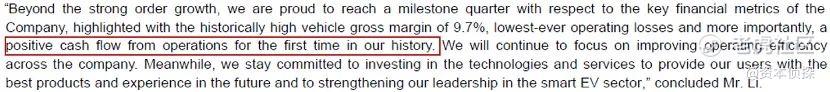 在亏损收窄的同时,蔚来汽车在今年二季度也历史上首次实现经营活动现金流转正,这也标志着蔚来汽车实现了正向的自身造血能力,单纯依靠“融资续命”的时代也得以终结。