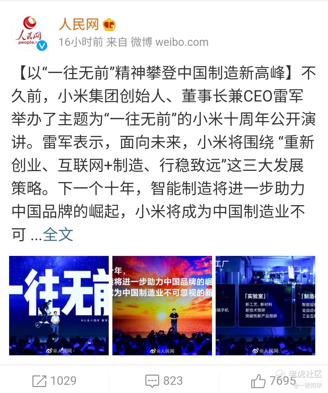 人民网19日关于小米十周年专题文章及新闻报道:
