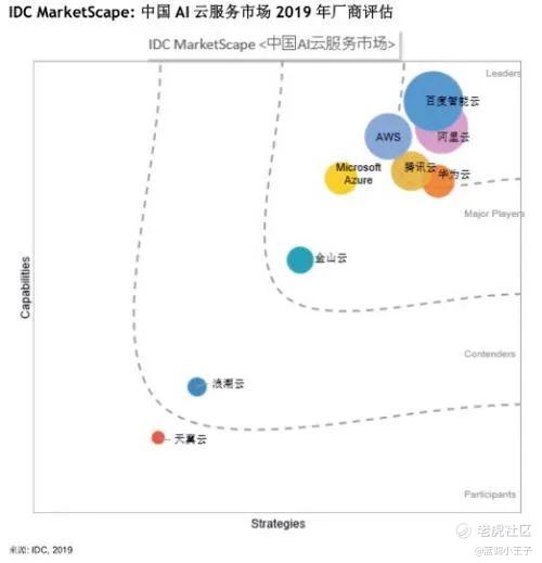 2019年IDC研究报告中,百度只能云在能力和战略两个维度都处于领先地位