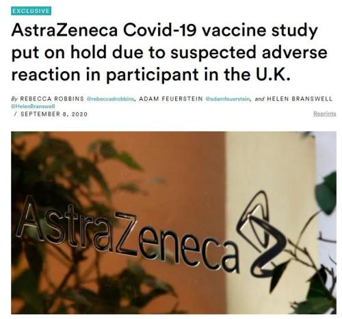 STAT报道称,目前全球有9支候选疫苗进入三期试验阶段,阿斯利康研发的疫苗是目前已知的首支暂停临床试验的疫苗。