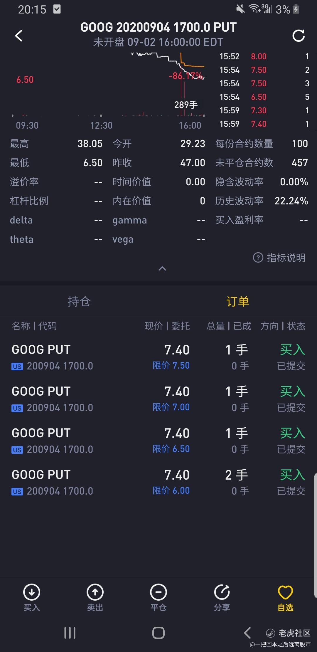 盘前挂的,我是环球账户,可能你是综合账户就不可以。