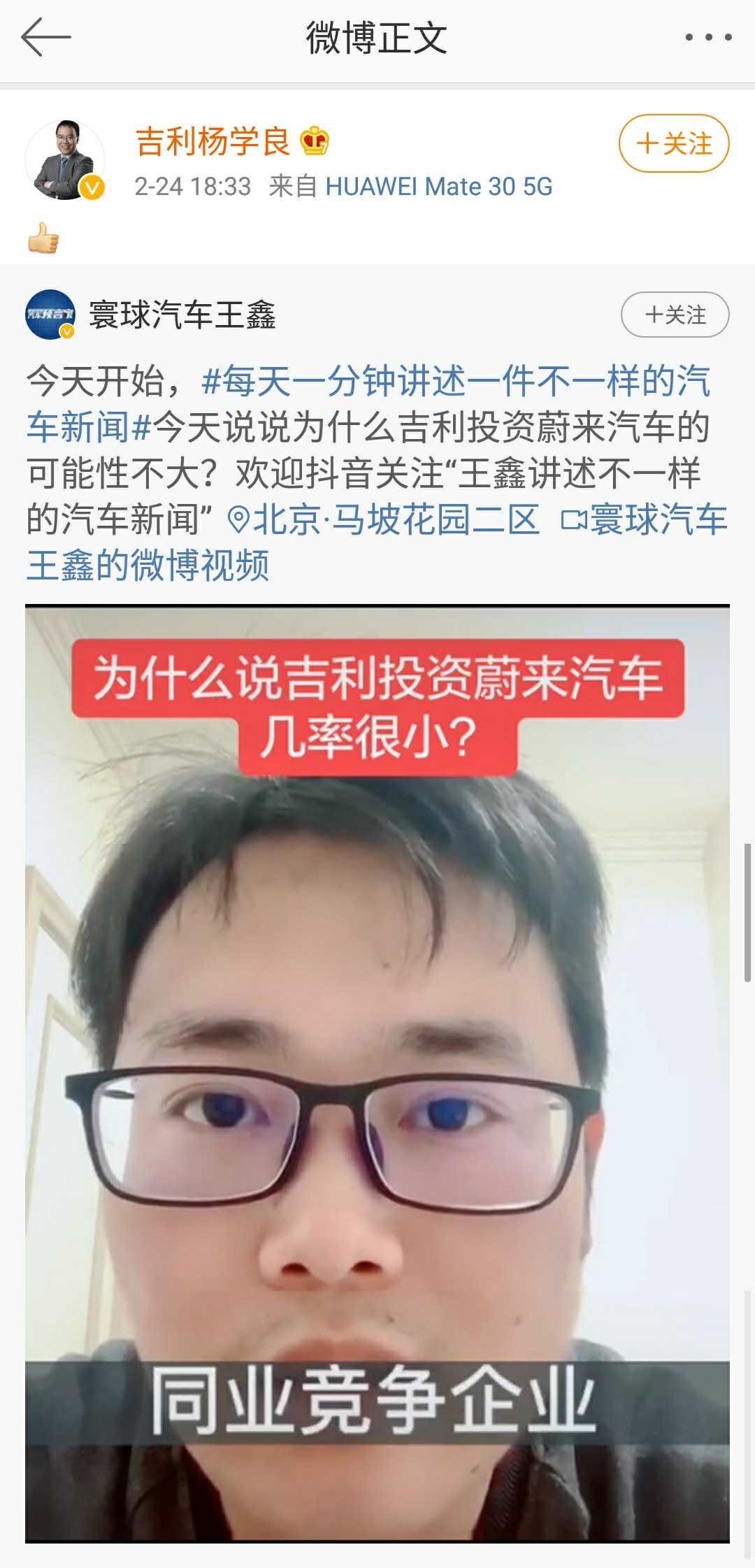 副总,新闻刚出来的时候他就说过,没听说吉利入股蔚来的消息