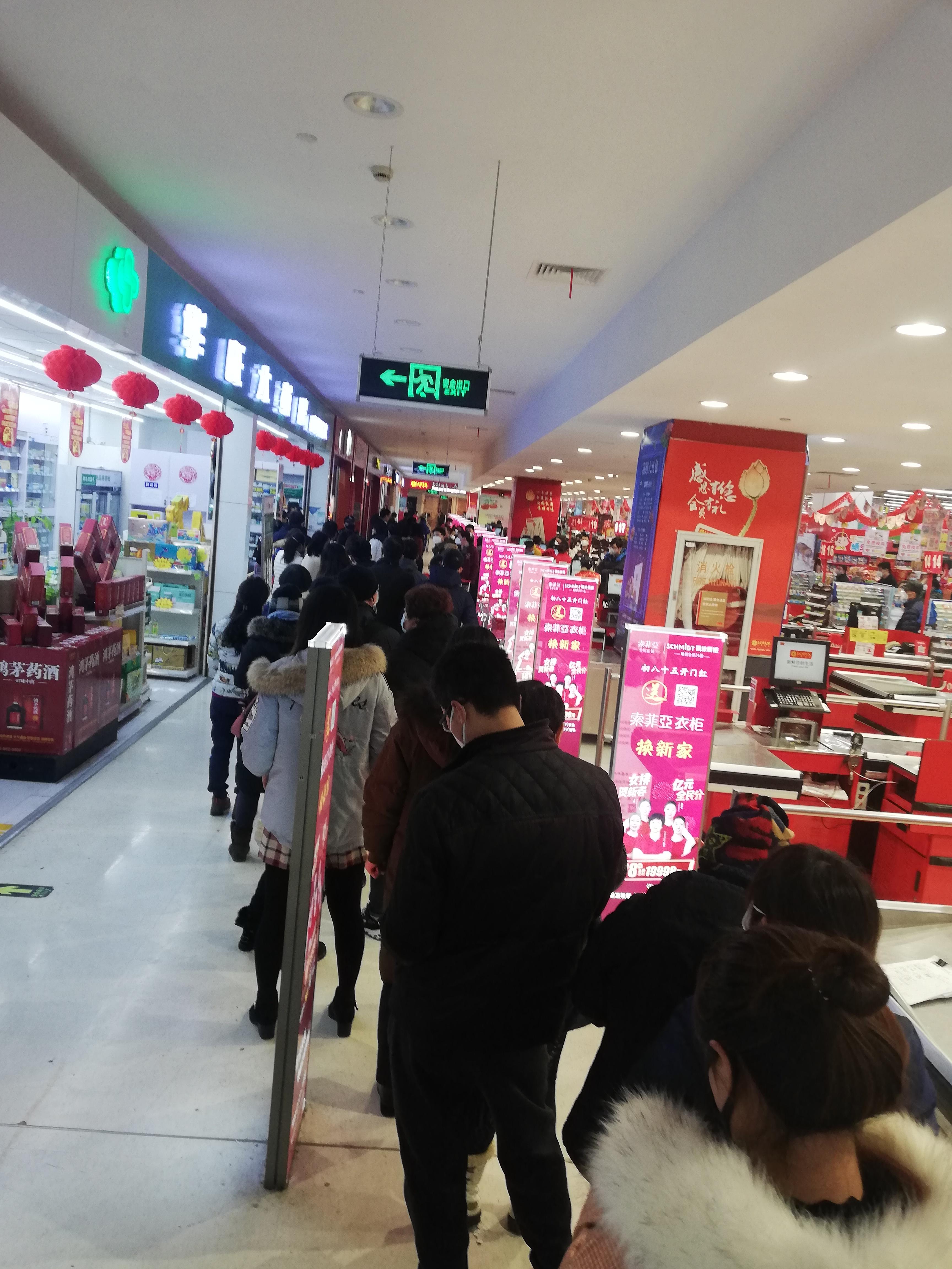 上海是不是第一个放国家发放口罩消息出来的不是很清楚,不过全国各地应该大差小不差。消息放出来之后就开始联系各大药房,联系了两天,跑了附近好几家药房都没有,只有一家偏远一些的电话里说是下午口罩会到,让下午5到6点过去。下午4.30到地方之后发现这个药店是开在bflh连锁超市一排收银处对面的,在门口排起了很长很长的队伍已经成半包围结构把超市收银处围起来了,在队伍的首部站了好几个保安维持秩序。我就上去问排在前面的人,这里是不是再买口罩?他们统一口径说:不是的,这里没有口罩。呵,这么长队,我就不明白了,果断排在大概85人的位置,又跟84确认了一下,确实是在等口罩。这里面有很多其实是从超市购物出来看到药店排队跟风排过来的。两个药师一直不停喊今天没有了,排队也没用了,根本没人信。场面可以说是越来越壮观,把超市和药店几度围个水围个泄不通,但不至于无法控制。
