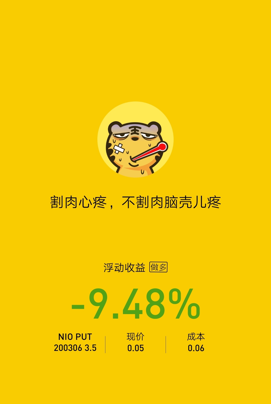100%的时候没有卖,挺过了-85%的时候,今天做个了断吧。