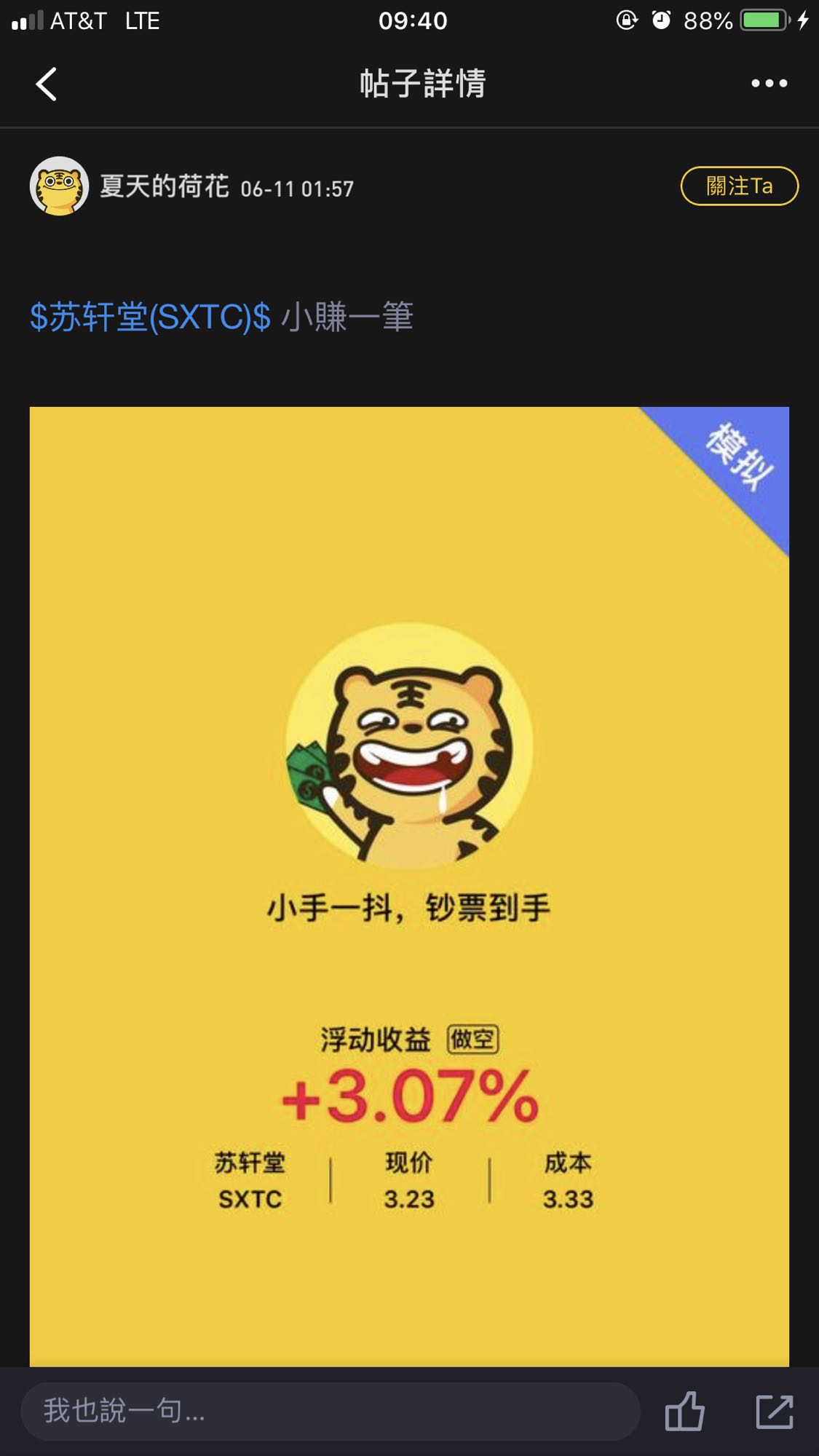 $苏轩堂(SXTC)$ 三美金买的就不卖看你能涨多少