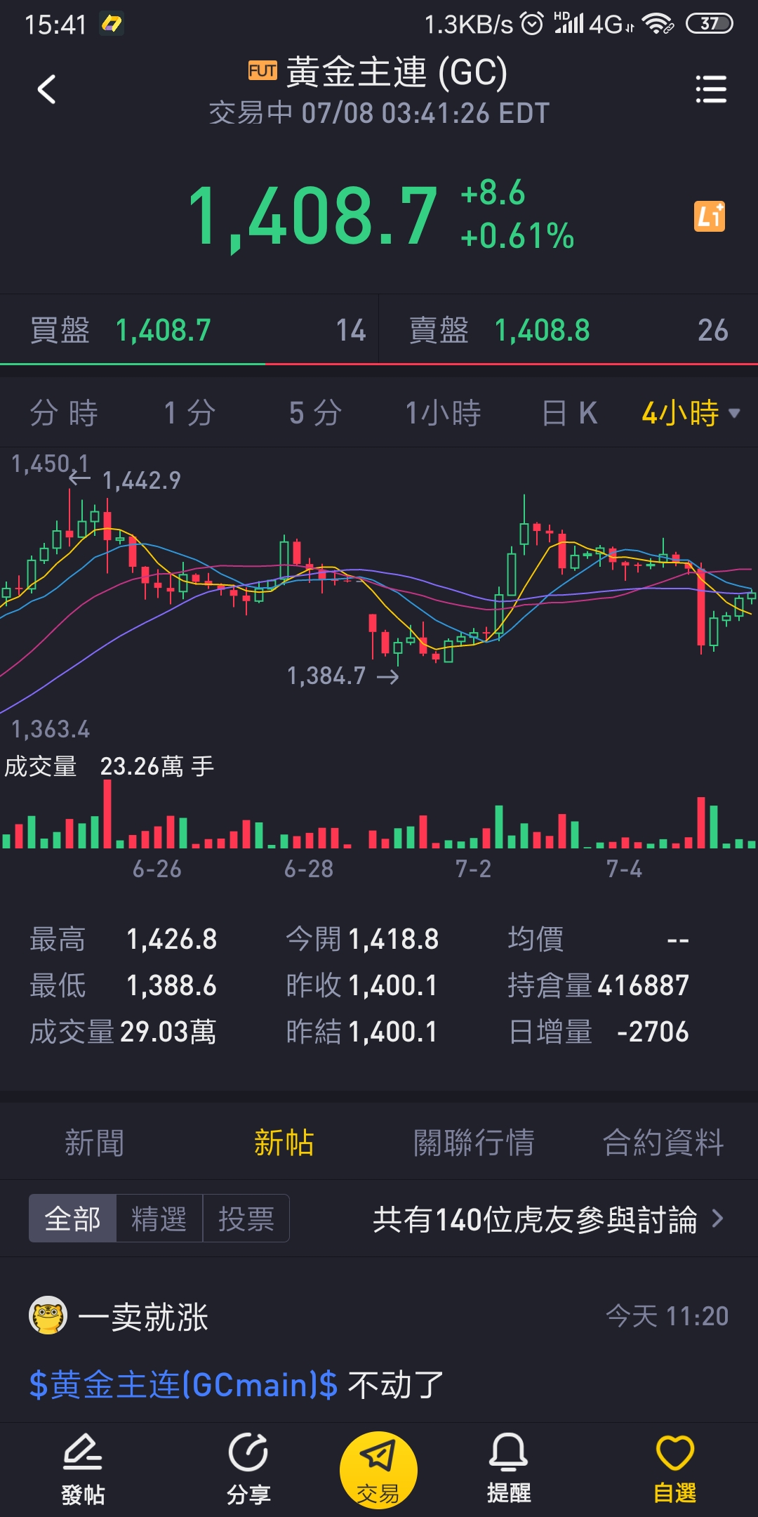差不多是四小时线回踩调整的末期了,看接下来米股是不是跟大A跌,如米股继续新高后的回踏,黄金就可能回到非农数据前的位置,再次确立“大皇”趋势