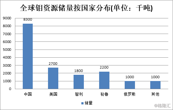 中国是全球钼资源最为丰富的国家,钼储量达830万吨,占全球钼储量的近一半。2011年以来,中国新发现安徽沙坪沟等三个200万吨级的钼矿,我国作为世界钼矿资源第一大国的基础更加稳固。