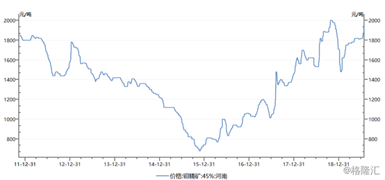国内钼供给主要集中于大型原生钼矿山,其中金堆城钼矿、洛阳栾川钼矿及伊春鹿鸣钼矿2017年钼产品产量占到国内总产量的一半以上。由于过去几年钼价低迷,国内众多中小钼矿山无法盈利、纷纷停产,行业集中越发明显。